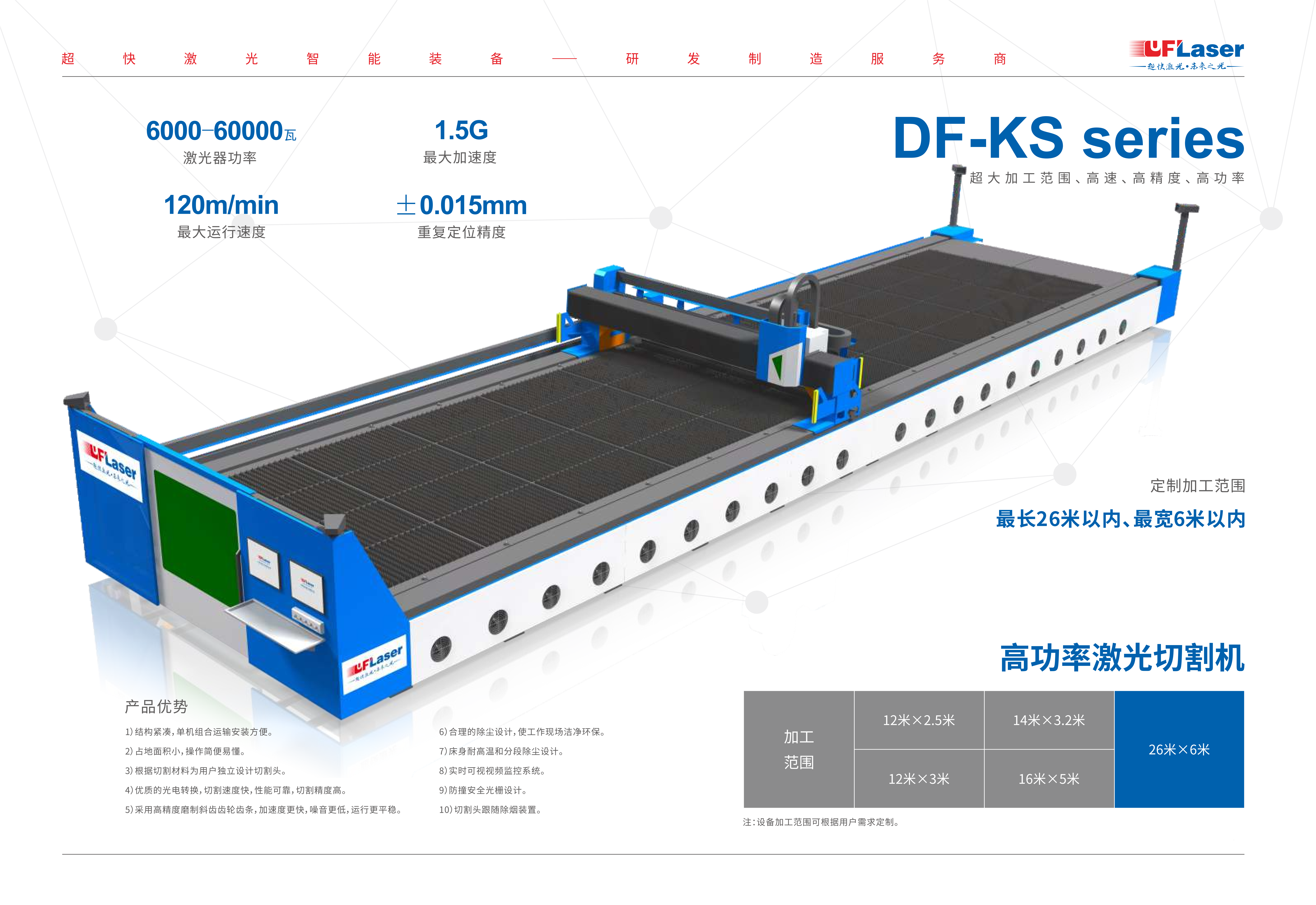4.超大幅面設(shè)計(jì),13米*3米使加工范圍更大。